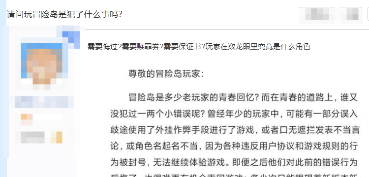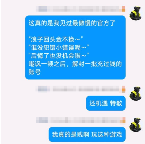 为预告新区开启,游戏运营方发布了预告公告。但是公告中的“特赦”“悔过玩家”“重获自由”等表述让玩家大跌眼镜。